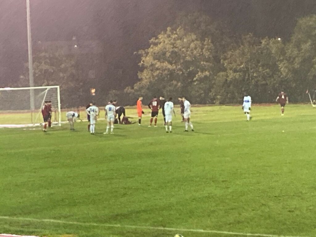 Jason Goodchild had an opportunity to equalise when evading his marker but his header from Jerome Jayaguru’s cross went wide.